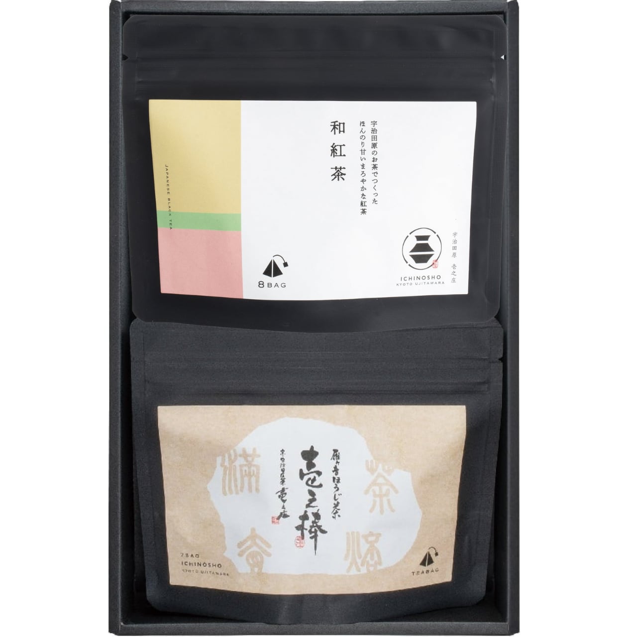 壱之庄で人気の「壱之棒(雁ヶ音ほうじ茶)・紅茶(宇治田原産和紅茶)」※を組み合わせました。